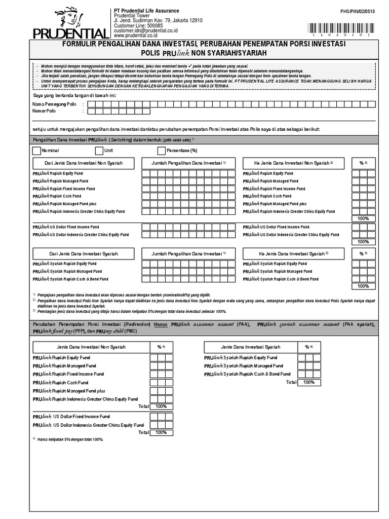 Formulir Pengalihan Dana Investasi Perubahan Penempatan