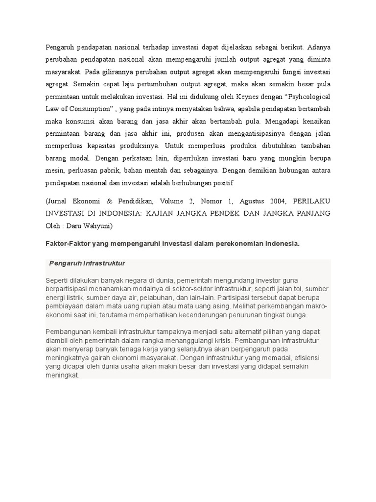 Pengaruh Pendapatan Nasional Terhadap Investasi Dapat